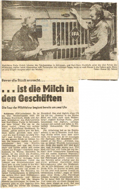 Während der DDR-Zeit blieb die Firma immer in privater Hand und arbeitete mit 3 LKW als Kommissionär des Kraftverkehrs für die VdgB Molkereigenossenschaft Dessau, Betrieb Bitterfeld, bei der Auslieferung von Milch- und Milchprodukten.